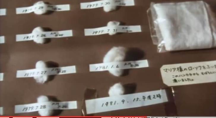 Theo thông lệ mỗi khi Đức Mẹ khóc, các nữ tu ngưng làm việc và tụ họp trước tượng Đức Mẹ để lần hạt, và sau đó thì linh mục lau những giọt nước mắt. Miếng bông gòn dùng lau nước mắt Đức Mẹ được gởi tới phòng thí nghiệm tại đại học Akita và Gifu để thử nghiệm và kết quả được xác nhận là có chứa “chất nước từ con người”.